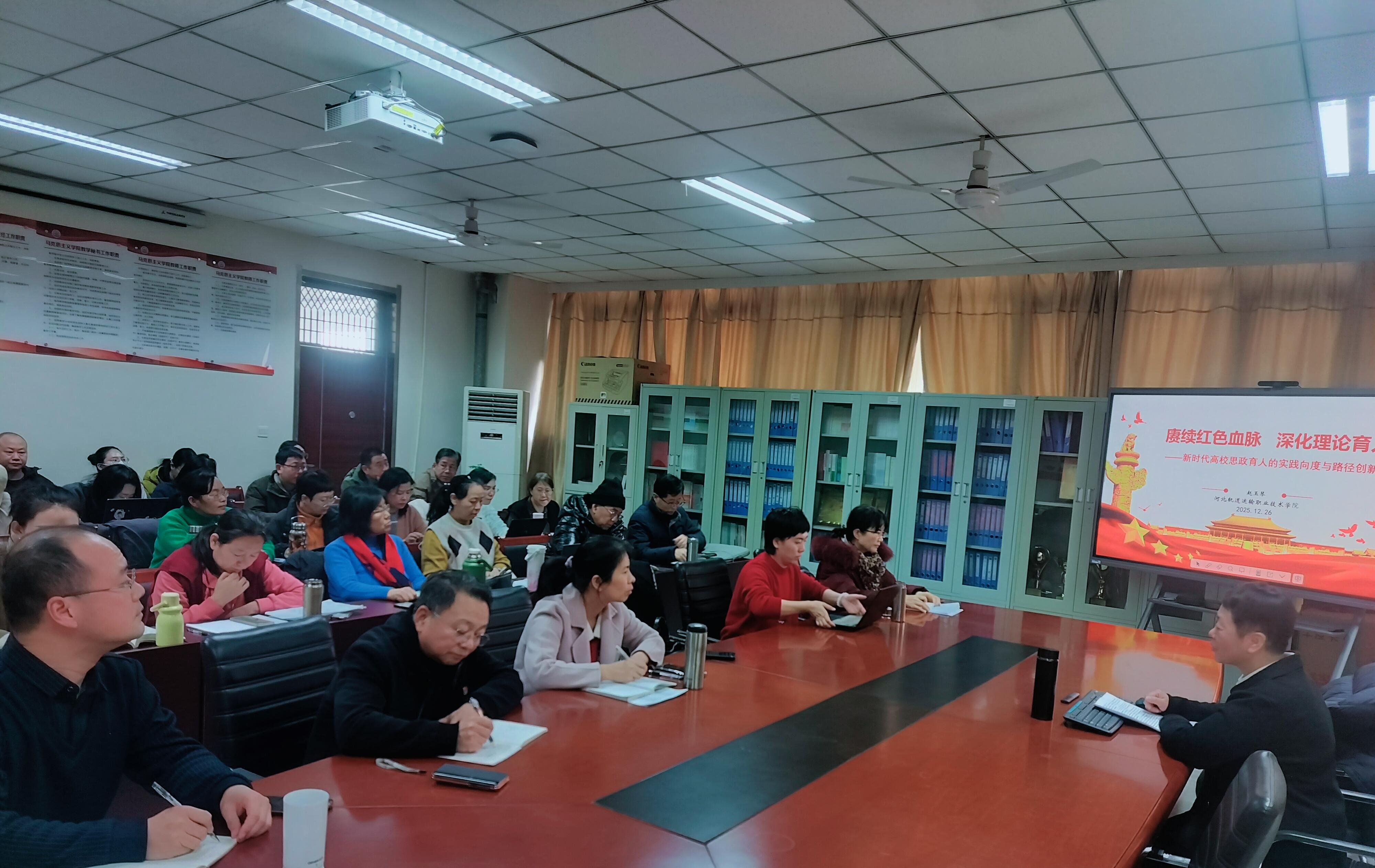 为强化教师理论育人能力,筑牢思政育人根基,2025年12月26日下午,马克思主义学院特邀赵玉琴教授开展“赓续红色血脉 深化理论育人”专题讲座,全院教师参会学习,助力提升思政课教学质量。